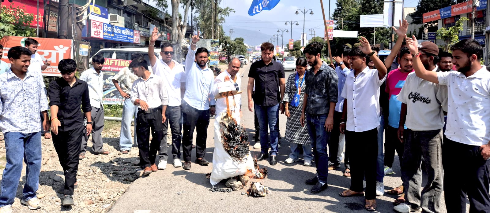 ऋषिकेश। UKSSSC स्नातक स्तरीय परीक्षा में पेपर लीक धामी सरकार युवाओं के भविष्य के साथ कर रही खिलवाड़ : कांग्रेस एवं NSUI ने फूंका पुतला...